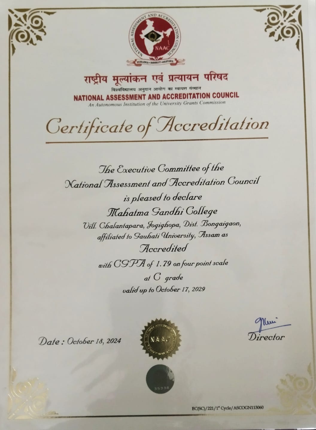 Certificate of NAAC Accreditation